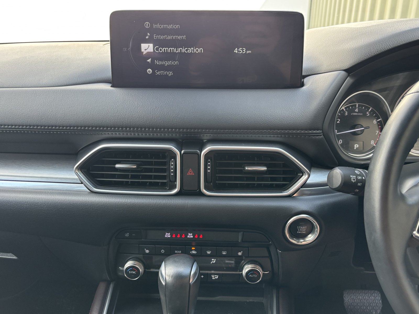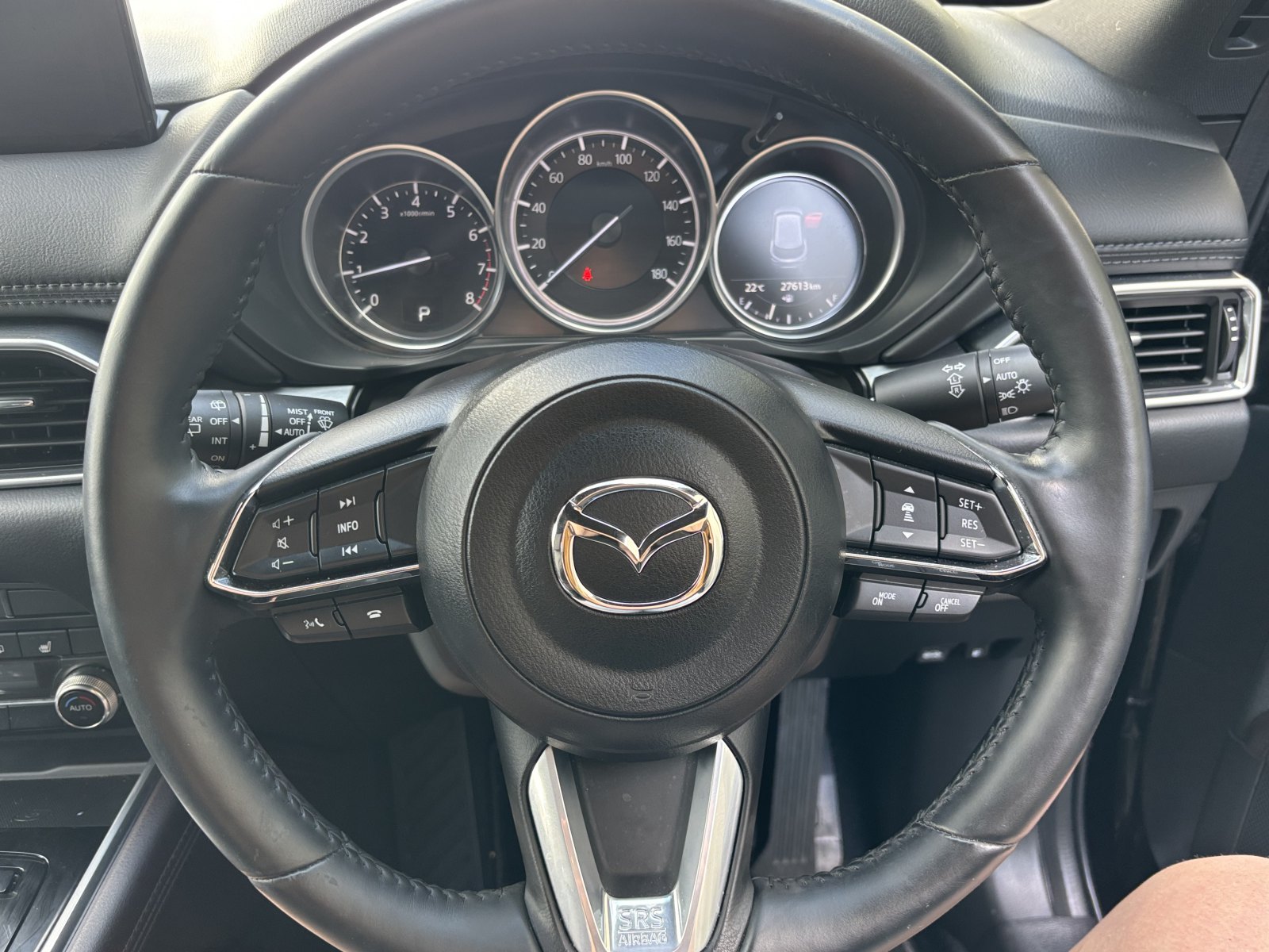 The CX-8 has an exceptionally smooth six-speed automatic transmission, There is also a large, clear heads up display unit, smart key, reversing camera and sensors, an integrated sat nav system, an AEB blind spot warning system, traffic sign recognition feature, and adaptive cruise control.