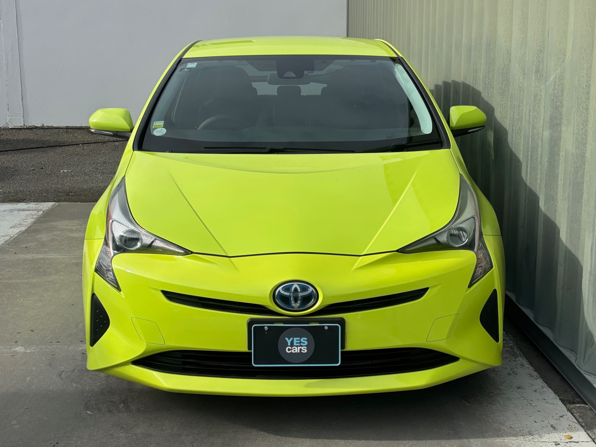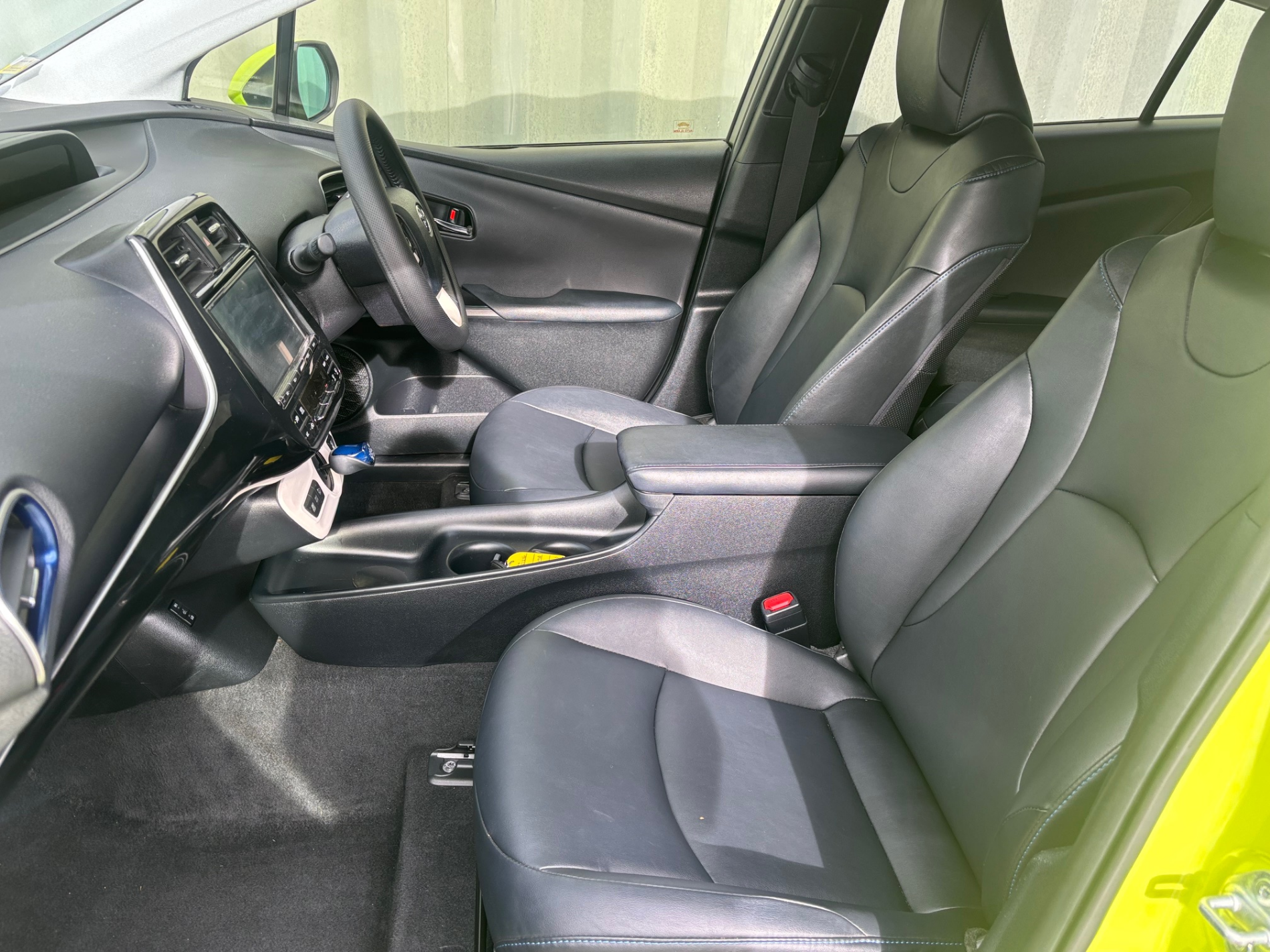 Here at YESCARS we have this 2017 yellow Prius Hybrid S Touring with black leather and toyota safety sensing.