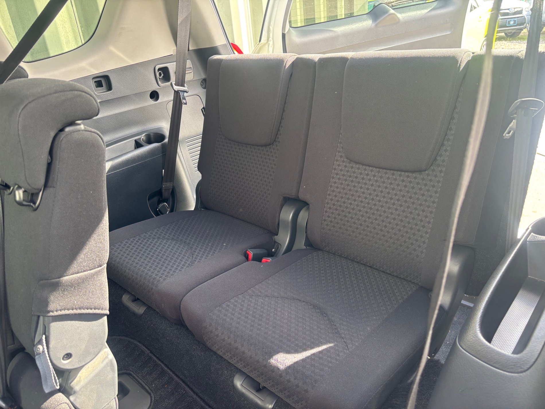 The Toyota Vanguard is a spacious car. The legroom on the first row is excellent and even a tall driver will have enough room to play with. On the second row, the legroom is also good including the middle seat which is usually cramped on most cars. In the 7 seater configuration, the Toyota Vanguards boot space is really impressive, It can comfortably carry luggage for a family of five with room to spare. In the 2 seater configuration, the 2nd row seats fold down to create space almost comparable to a cargo van.