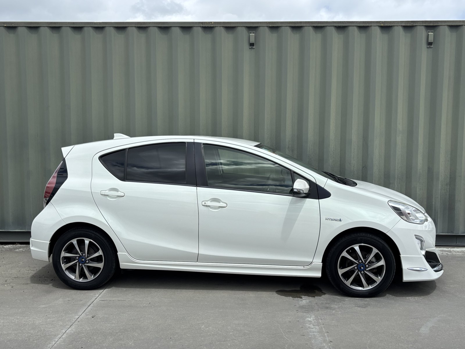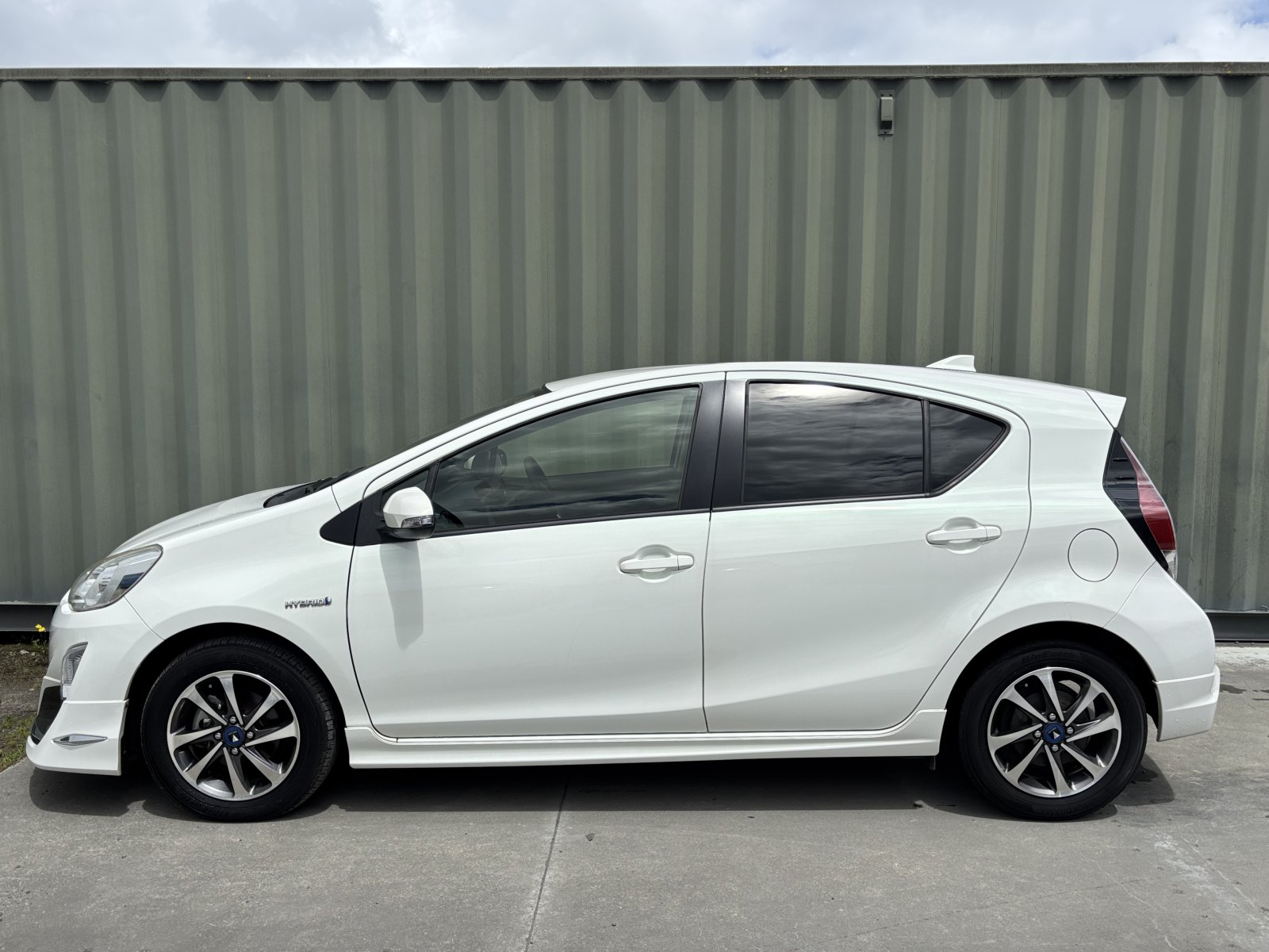 Here at YESCARS we have this 2015 Toyota AQUA hybrid with Modelista Alloys & Aerokit.